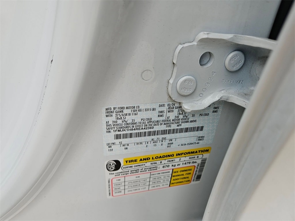 Check out all these great options Avis Certified Certified, 18" Machined-Face Aluminum Wheels, 3rd row seats: split-bench, Reclining 3rd row seat, Split folding rear seat, 3.31 Axle Ratio, 4-Wheel Disc Brakes, 6 Speakers, ABS brakes, Air Conditioning, Alloy wheels, AM/FM radio: SiriusXM with 360L, Auto High-beam Headlights, Auto-dimming Rear-View mirror, Automatic temperature control, Brake assist, Bumpers: body-color, Cloth Front Captain's Chairs, Compass, Delay-off headlights, Driver door bin, Driver vanity mirror, Dual front impact airbags, Dual front side impact airbags, Electronic Stability Control, Emergency communication system: SYNC 4 911 Assist, Exterior Parking Camera Rear, Four wheel independent suspension, Front anti-roll bar, Front Bucket Seats, Front Center Armrest, Front dual zone A/C, Front reading lights, Fully automatic headlights, Garage door transmitter, Heated door mirrors, Illuminated entry, Leather steering wheel, Low tire pressure warning, Navigation system: Connected Navigation, Occupant sensing airbag, Outside temperature display, Overhead airbag, Overhead console, Panic alarm, Passenger door bin, Passenger vanity mirror, Power door mirrors, Power driver seat, Power steering, Power windows, Radio data system, Radio: AM/FM Stereo w/MP3 Capable, Rear air conditioning, Rear anti-roll bar, Rear reading lights, Rear window defroster, Rear window wiper, Remote keyless entry, Security system, SiriusXM w/360L, Speed control, Speed-sensing steering, Speed-Sensitive Wipers, Spoiler, Steering wheel mounted audio controls, SYNC 4 w/Enhanced Voice Recognition, Tachometer, Telescoping steering wheel, Tilt steering wheel, Traction control, Trip computer, Variably intermittent wipers, and Voltmeter.