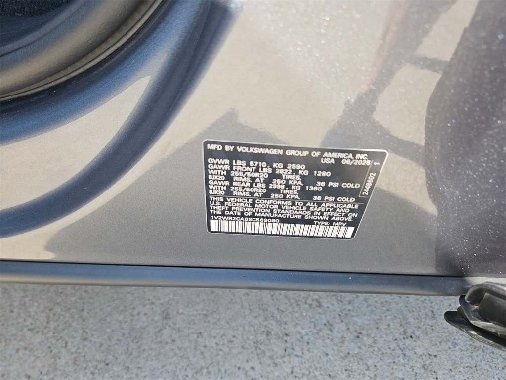 Check out all these great options Avis Certified Certified, 20" 2-tone machined alloy wheels, Brake assist, Power Liftgate, Remote keyless entry, 3rd row seats: split-bench, 4-Wheel Disc Brakes, 6 Speakers, ABS brakes, Air Conditioning, Alloy wheels, AM/FM radio: SiriusXM with 360L, Auto High-beam Headlights, Auto-dimming Rear-View mirror, Automatic temperature control, Bumpers: body-color, Compass, Delay-off headlights, Driver door bin, Driver vanity mirror, Dual front impact airbags, Dual front side impact airbags, Electronic Stability Control, Emergency communication system: VW Car-Net Safe & Secure 5-year, Exterior Parking Camera Rear, Four wheel independent suspension, four-wheel independent suspension, Front anti-roll bar, Front Bucket Seats, Front Center Armrest, Front dual zone A/C, Front fog lights, Front reading lights, Fully automatic headlights, heated and Actively ventilated front bucket seats, Heated door mirrors, Heated front seats, Heated steering wheel, Illuminated entry, Low tire pressure warning, MIB3 composition media radio, Occupant sensing airbag, Outside temperature display, Overhead airbag, Overhead console, Panic alarm, Passenger door bin, Passenger vanity mirror, perforated V-Tex leatherette seating surfaces, Power door mirrors, Power driver seat, Power steering, Power windows, Radio data system, Rain sensing wipers, Rear air conditioning, Rear anti-roll bar, Rear reading lights, Rear seat center armrest, Rear window defroster, Rear window wiper, Security system, Speed control, Speed-sensing steering, Split folding rear seat, Spoiler, Steering wheel mounted audio controls, Tachometer, Telescoping steering wheel, Tilt steering wheel, Traction control, Trip computer, Turn signal indicator mirrors, Variably intermittent wipers, and Ventilated front seats.